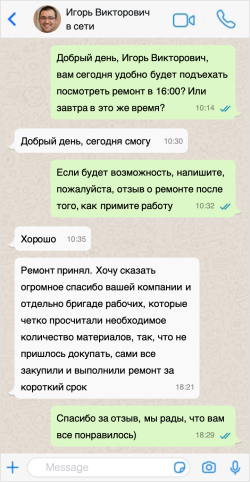 После заключения договора приступаем к ремонту. Длительность капитального ремонта составляет 20 дней, а косметического 5. Срок работы зависит от площади помещения и его особенностей.